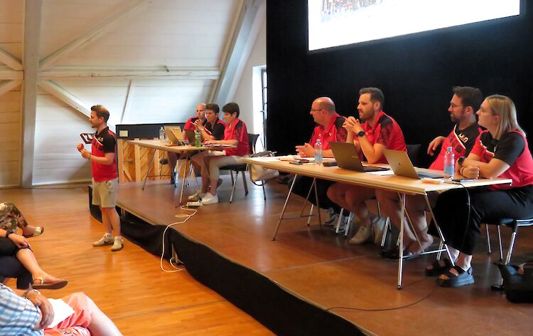 Stefan Iseli appellierte in seiner typisch unterhaltsamen, aber auch deutlichen Art an die Anwesenden, sich im Verein mit Herz zu engagieren. Ein Verein funktioniert nur mit den drei Säulen: die Aktiven (= die Spieler), die Drahtzieher (= Vorstand und Technische Kommission) und die dritte, ebenso wichtige Säule, die sicherstellt, dass Spiele / Turniere überhaupt durchgeführt werden können (= Helfende). Mit seinem Referat wollte Stefan Iseli die Anwesenden für die dritte Säule begeistern.