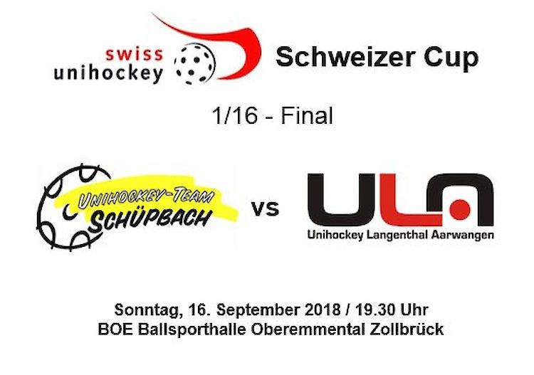 Mitte September wartet im 1/16-Final der UHT Schüpbach auf unsere Mannschaft. Das Spiel findet in Zollbrück statt - eine gute Gelegenheit, unser Team vor Ort lautstark zu unterstützen!