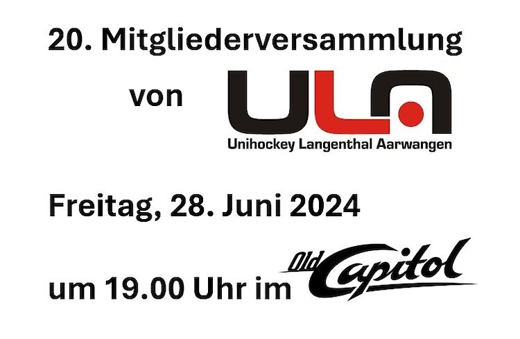 Am Freitag, 28. Juni 2024 ab 19.00 Uhr findet im OldCapitol Langenthal die 20. Mitgliederversammlung von ULA statt.