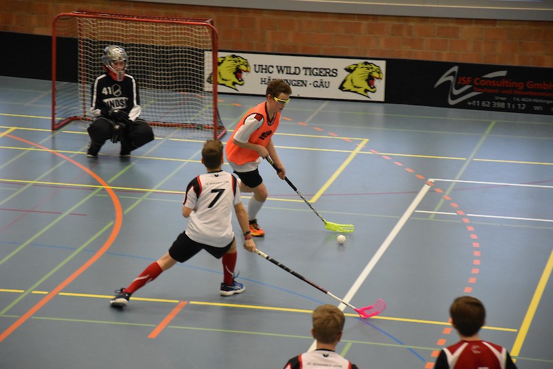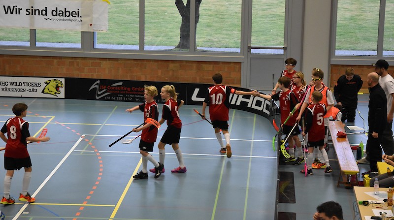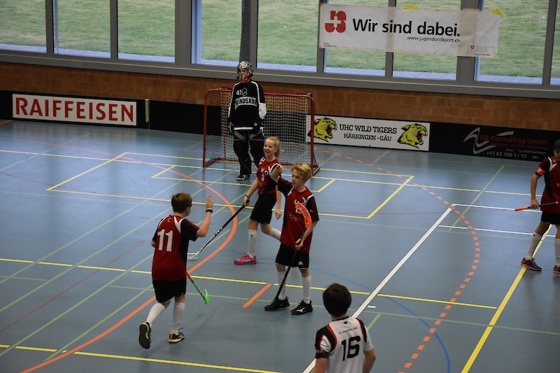 Hoch konzentriert, gepaart mit der nötigen Lockerheit, stiegen wir ins erste Spiel. Das eingespielte Team aus Herzogenbuchsee gab den Tarif bereits zu Spielbeginn bekannt. Aus einer sicheren, soliden Abwehr spielend, konnten wir das Spielgeschehen mit fortlaufender Spieldauer an uns reissen. Es brauchte dann schon einige sehr platzierte Schüsse, bis sich der Gegner-Goalie endlich geschlagen geben musste. In der Abwehr blieben wir weitgehend fehlerlos und durch gezielte Tempovorstösse gelangen uns bis zur Pause einige schöne Tore.