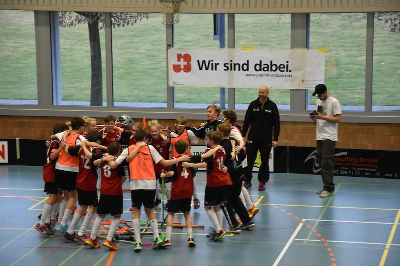 Mit zwei Siegen in der Tasche und der Gewissheit, eine auf allen Belangen hervorragende Leistung gebracht zu haben, nahmen wir stolz den Pokal für den Gruppensieg entgegen. Wir gratulieren auch den anderen Teams und wünschen ihnen weiterhin viel Spass und Erfolg beim Unihockey. Ein Zwischenziel ist nun erreicht und mit einer ebenso starken Leistung lässt sich auch an der Finalrunde vom 14./15. April 2018 was holen. Auf jeden Fall werden wir Trainer uns für allfällige Feierlichkeiten besser vorbereiten, damit unser Winnerteam nicht nur mit kaltem Duschwasser feiern muss!