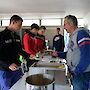 Das erste Mittagessen - Hörnli, Tomatensauce, Salat und zum Dessert ein leckeres Stück Cake - fand grossen Anklang - die Aufregung, die neuen Mitspieler und das Training hatten für ordentlich Hunger gesorgt!