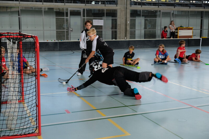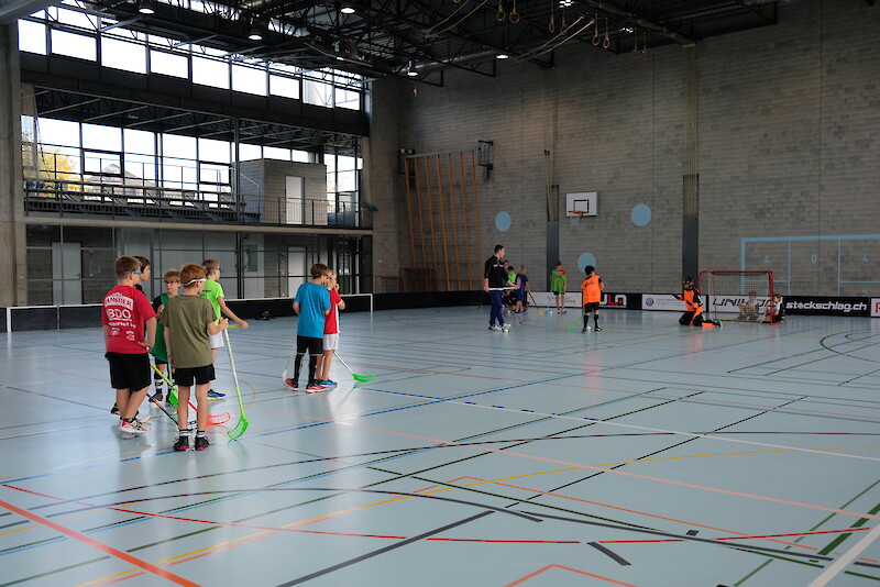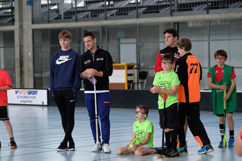 Die letzte Herbstferienwoche stand nun bereits zum 5. Mal im Zeichen des ULA-Juniorencamps. 38 Kinder im Alter zwischen 9 und 12 Jahren hatten sich dafür angemeldet; nebst ULAnern waren auch die Vereine UHC Black Creek, Unihockey Mittelland und die Tigers Härkingen vertreten. Die Leitung teilten sich in diesem Jahr Gian Mühlemann, NLA- und U21-Spieler beim SV Wiler Ersigen und U19-Nationalspieler, sowie Nikita Satsukevich, ebenfalls U21-Spieler bei SVWE, mittlerweile im NLB-Team von ULA. Unterstützt wurden die beiden von einer motivierten und ebenso versierten Helfer-Crew.