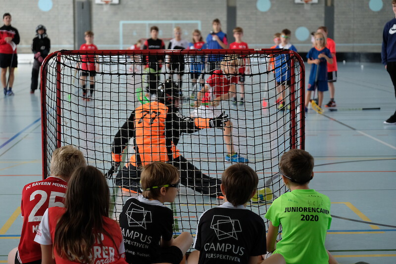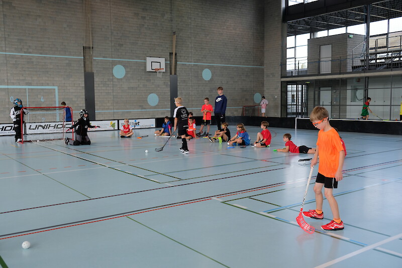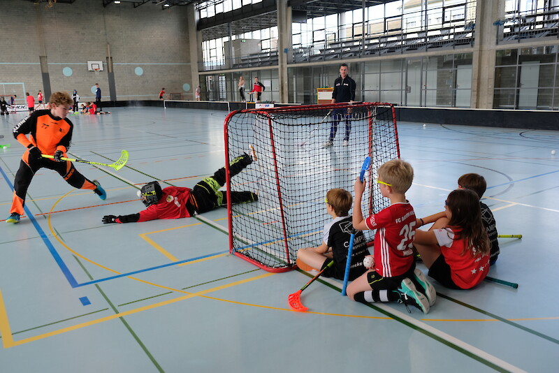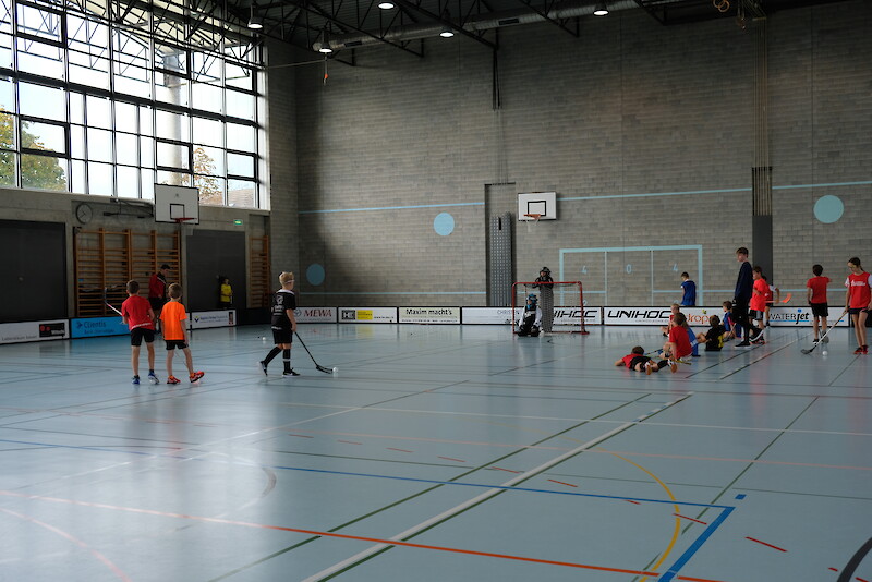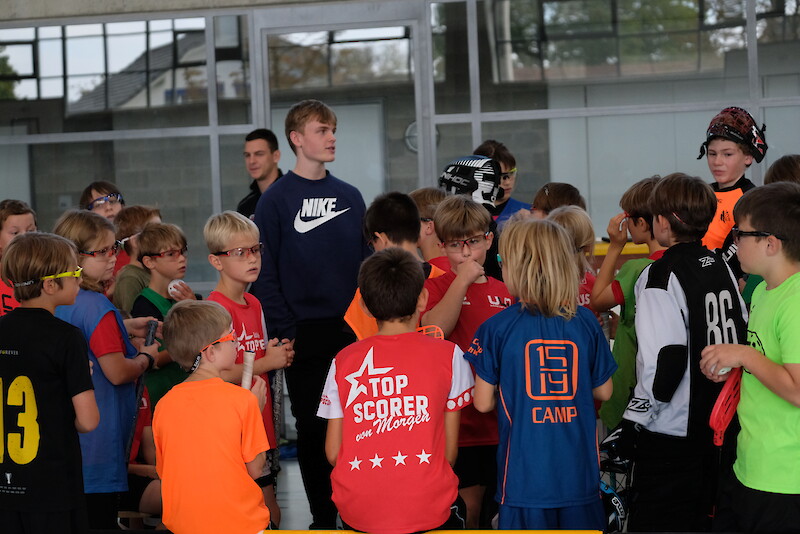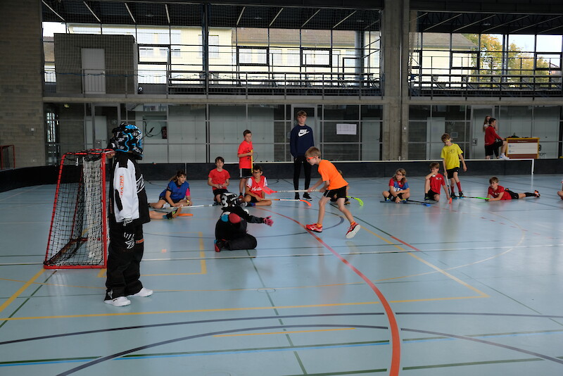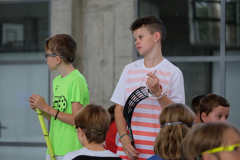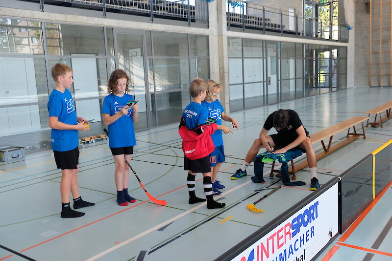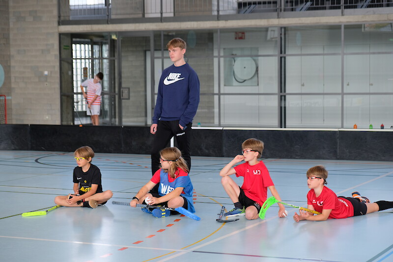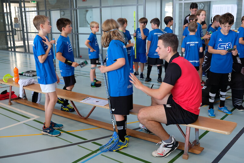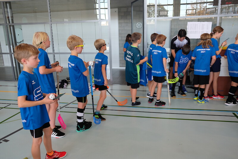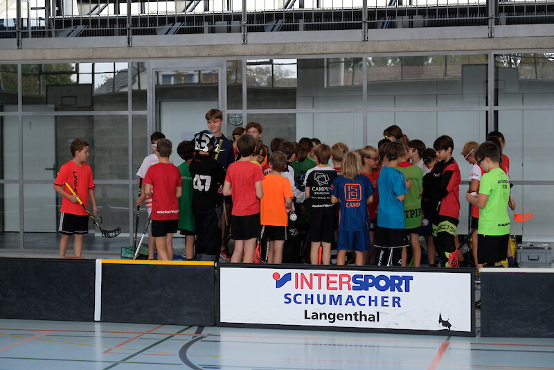Am Montag um 9.00 Uhr ging’s los: kurze Vorstellungsrunde, Infos über den Ablauf der Camp-Tage, und dann konnten bereits die Banden aufgestellt werden. In vier Gruppen aufgeteilt wurden die ersten Spiele und Übungen gemacht, bald war eine kleine Trink- und Znüni-Pause angesagt, und weiter ging’s mit dem Unihockey-Latein.
