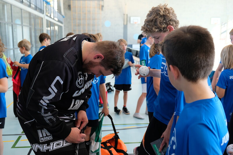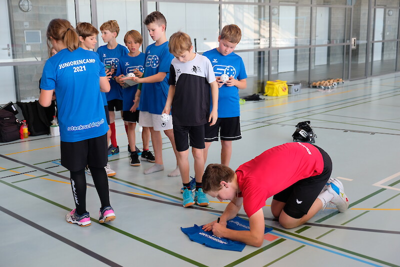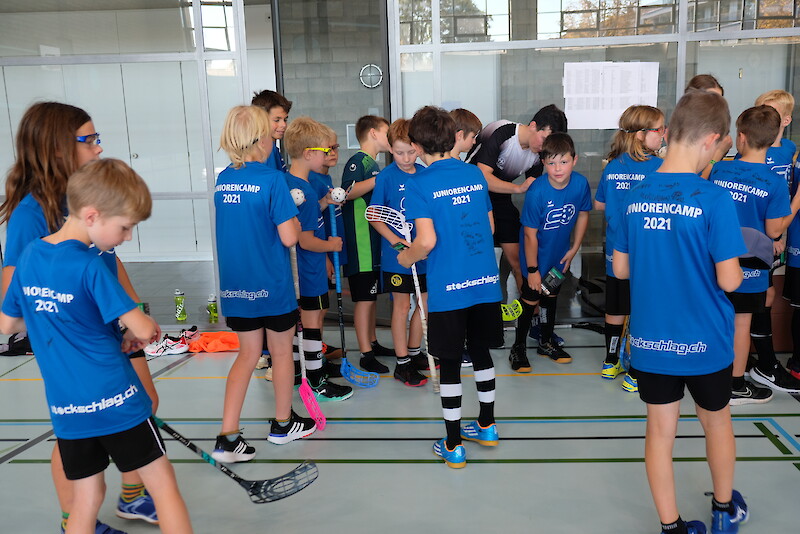 Am Donnerstag erhielten alle Kinder zur Erinnerung ein tolles Junioren-Camp-T-Shirt, welches sie umgehend von den Protagonisten signieren liessen. Gleichzeitig erkundigten sie sich auch über die nächsten Meisterschaftsspiele ihrer Vorbilder, damit sie diese bald schon in einem «richtigen» Match beobachten können.
