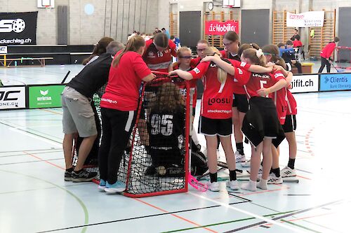 Im zweiten Gruppenspiel gegen den UH Appenzell ging es trotz einer zwischenzeitlichen 5:2-Führung mit einem knappen 6:5 in die Pause. Die Trainer sahen Redebedarf und hielten eine derart leidenschaftliche Standpauke, dass sie glatt die Zeit vergassen. Die Quittung: 2 Minuten Strafe wegen Spielverzögerung! Doch selbst diese ungewollte Unterzahl brachte die Spielerinnen nicht aus dem Konzept. Sie brachten den knappen Sieg nach Hause und sicherten sich den Halbfinal-Einzug.