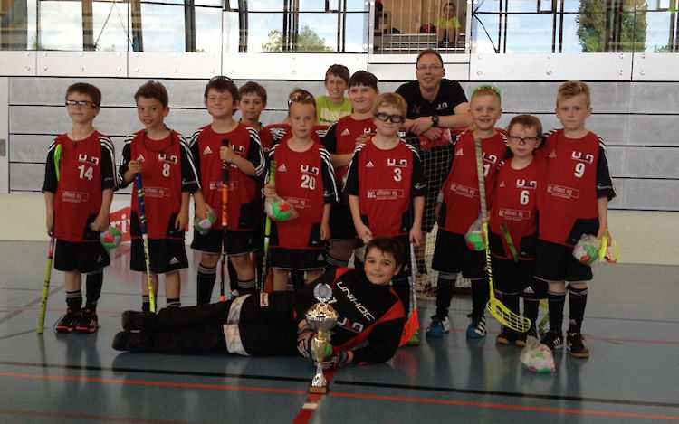 Der SV Wiler-Ersigen organisierte dieses Jahr zum ersten Mal statt im Herbst ihr Interhockey-Challenge als Saisonabschluss-Turnier im Mai. Von ULA haben drei Teams teilgenommen, die D Junioren buchten das Turnier als Erfahrungen sammeln mit 3 Niederlagen gegen die stärksten D Teams ab. Die Kids (F-Junioren) spielten mit ihren neuen Trainern (Milan&Tim) bravourös auf und haben am Morgen den schönen zweiten Gruppenrang erreicht. Im Viertelfinal wurden sie leider knapp 2:3 bezwungen, obwohl sie mehr vom Spiel hatten, und konnten schliesslich das Turnier im 5. Rang bestückt mit dem Erinnerungspreis verlassen. Unsere E Junioren schliesslich haben das Turnier in der 2. Stärkeklasse richtiggehend von A bis Z dominiert und mit einem Torverhältnis von 66:7 alle 3 Gruppenspiele, Halbfinal und Final souverän gewonnen. Als Coach hat es mich speziell gefreut, dass fast alle Spieler mindestens ein Tor zum Erfolg beigesteuert haben und somit neben dem Teamerfolg auch ein persönliches Erlebnis erfahren haben. Der Pokal selbst wird jedes Teammitglied nun eine Woche bei sich zu Hause sein Eigen nennen dürfen und allen stolz präsentieren können!