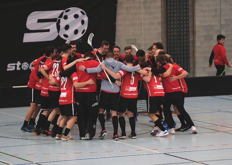 Auch die restlichen 30 Sekunden der Strafe überstand ULA unbeschadet, doch kaum war man im Spiel drin, pfiffen die Unparteiischen wieder eine Strafe gegen ULA wegen Stossen; die Verteidigung hielt aber stand, und als man wieder vollzählig war, konnte der Druck wieder aufgebaut werden. Belohnt wurde man mit dem 6 - 4 in der 46. Minute; Florian Kaufmann war auf Pass von Lino Cassani erfolgreich. Eine weitere Möglichkeit bot sich den Oberaargauern in der 47. Minute, als sie erneut in Überzahl spielen durften: Tuggen wurde wegen fehlendem Abstand bestraft, doch ULA konnte keinen Nutzen daraus ziehen. Die Partie ging hektisch weiter. Und wieder bremste sich ULA aus, als in der 52. Minute eine Strafe wegen Stossen ausgesprochen wurde. Doch auch zu viert vermochten die Langenthaler Nadelstiche in der gegnerischen Hälfte zu setzen, und sie überstanden die Strafe erneut unbeschadet. Auch eine weitere Strafe gegen die Schwyzer blieb - einmal mehr - ungenutzt. In den verbleibenden 2 Minuten spielte Tuggen ohne Torhüter, konnte sich aber nicht in der gegnerischen Hälfte festsetzen, und so brachte ULA den Vorsprung über die Runde und konnte die Playout-Serie ausgleichen.
