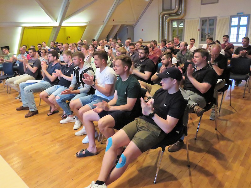 Die positive Bilanz- und Erfolgsrechnung sowie weitere Geschäfte konnten schliesslich im Eiltempo durchgewunken werden. Weiter wurden die Anwesenden "gluschtig" gemacht auf die neuen Textilien unseres Ausrüsters Unihoc; coole Hoodies, Trainerjacken, Poloshirts liessen die Vorfreude auf die neue Saison weiter steigen.