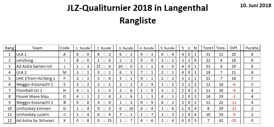 Am Sonntag 10. Juni fand in der Langenthaler Kreuzfeldhalle das Qualifikationsturnier der Juniorenliga Zentralschweiz statt. Diese führt seit Jahren ihre D-Junioren-Meisterschaft in drei Stärkeklassen parallel zu Swiss Unihockey durch. ULA mischte da in der Vergangenheit sehr erfolgreich mit und beabsichtigt, dies natürlich auch weiterhin zu tun.