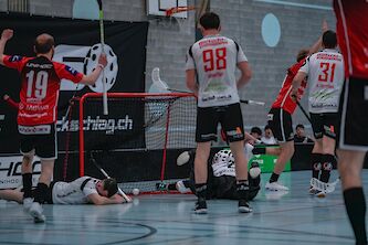 ULA hatte bereits das 2. Halbfinalspiel gegen Luzern in der Verlängerung gewonnen, man wusste also eigentlich, wie’s geht. Und die Langenthaler kamen in den ersten Minuten zu sehr guten Abschlüsse, welche aber der gut aufspielende UM-Torhüter zunichte machte. Es waren knapp sieben Minuten in der Verlängerung gespielt, als das unermüdliche Engagement der Langenthaler mit dem Siegtreffer belohnt wurde; Antti Suoraniemi war in der Mitte gestartet, hatte sich bis vors Oltener Tor durchgetankt und vermochte den Ball über die Linie zu bugsieren. Der Jubel des ULA-Anhangs in der vollen Kreuzfeldhalle war frenetisch, und mancher, der zuvor den Match still verfolgt hatte, liess sich zu einem lautstarken «Hopp ULA» hinreissen!