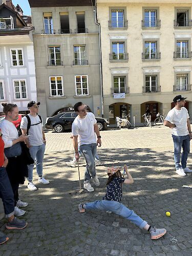 Trotz kleiner Startschwierigkeiten – defekter Bus, geschlossene Ausgabestation und einem kurzerhand zum Golfcaddy umfunktionierten Krocketwagen – liessen wir uns die gute Laune nicht verderben. Mit viel Einsatz, überraschend wenig Golf-Talent, einem Glas Weisswein in der Hand und bester Stimmung kämpften wir uns durch Bern. Schnell wurde klar: CityGolf ist anspruchsvoller als gedacht – oder unsere Technik hat noch etwas Luft nach oben. Den Sieg sicherte sich Samuel mit starken 21 Schlägen und darf sich damit als erster offizieller Bern-City-Golf-Champion des ULA-Club feiern lassen. Herzliche Gratulation!