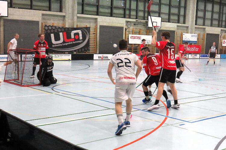 Die Fricktaler starteten schwungvoll, und nach 18 Sekunden musste Wagner im Tor von ULA bereits eingreifen. Es sollte danach nur knapp eine Minute dauern, bis die Gäste einen schnellen Gegenangriff starteten und zum 0:1 jubelten. ULA blieb dran und fand besser ins Spiel. Kohler, welcher das ganze Spiel über völlig unbeschwert auftrat, gelang in der 6. Minute ein Abstauber, und er konnte prompt zum Ausgleich verwerten. Es folgten gute Abschlussmöglichkeiten, und ULA hatte einen weiteren Torerfolg mehrmals auf der Kelle. Aber dann mussten die Oberaargauer in der 11. Minute in Unterzahl. Die Aargauer fackelten nicht lange und gingen mit 1:2 in Front. Man schrieb die 16. Minute, als Hänny einen schnellen Angriff lancierte und zu Kohler passte, und dieser für den 2:2 Ausgleich sorgte. Bei diesem Zwischenresultat blieb es bis zur ersten Pause.