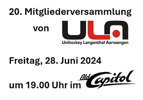 Am Freitag, 28. Juni 2024 ab 19.00 Uhr findet im OldCapitol Langenthal die 20. Mitgliederversammlung von ULA statt.